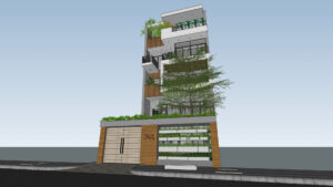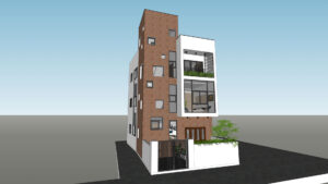 The result is a distinct architectural form that stands out as a landmark within the neighborhood.